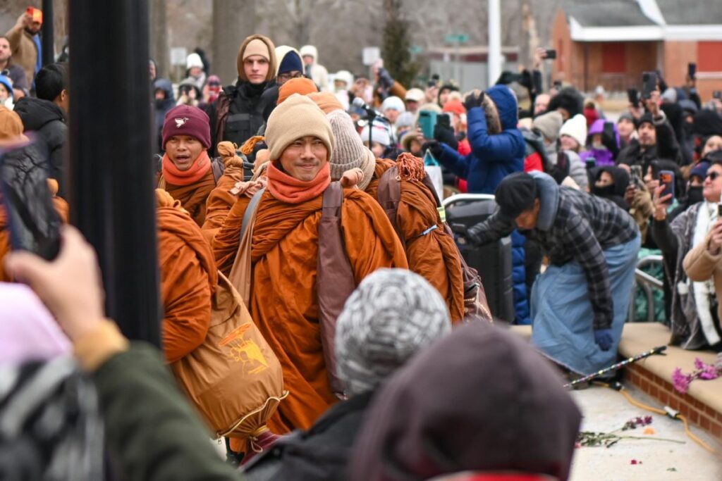 Freezing rain pelted their saffron robes. Ice coated the roads beneath their feet. Temperatures hovered at 21 degrees as sleet fell from a gray Carolina sky. Yet eighteen Buddhist monks kept walking.