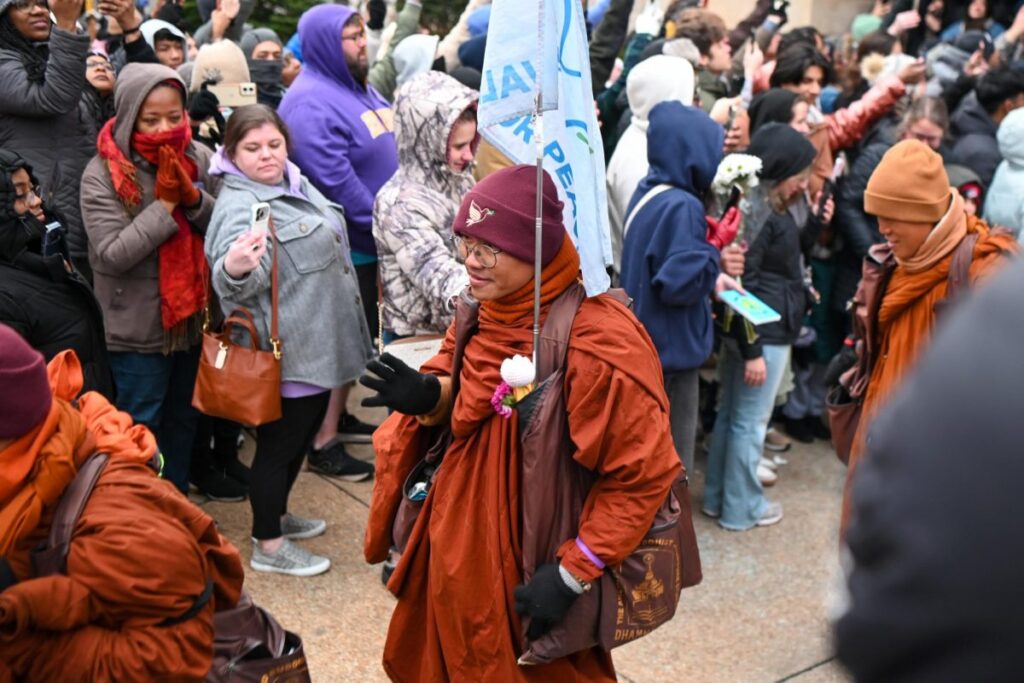 That fourth sign showed the Buddha there was another way of doing life, Sweger explained. A way to confront suffering, to move toward awakening and peace. These monks doing the walk serve that same purpose for Americans today. They are our own fourth sign.